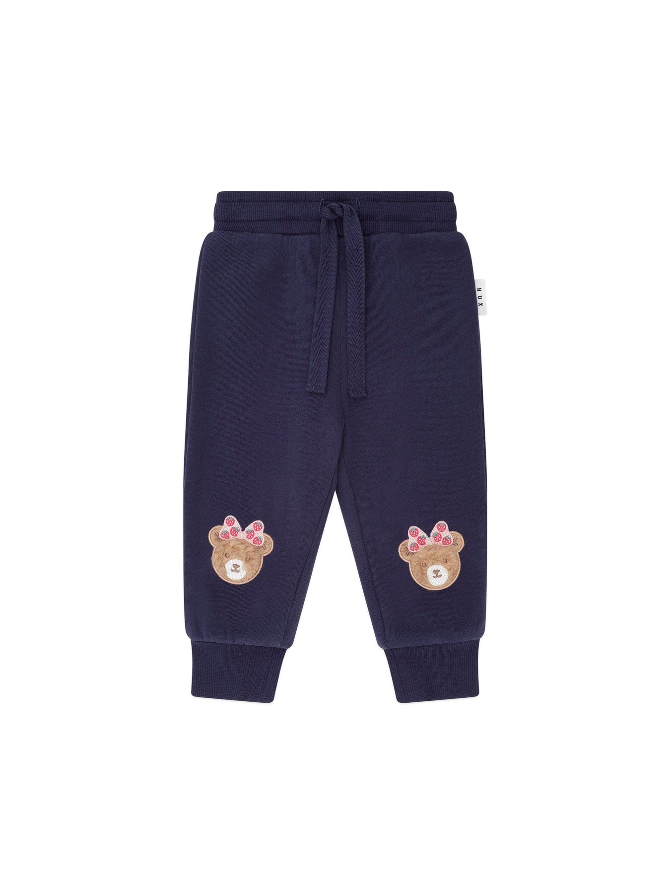 Made from fluffy organic cotton fleece, these track pants feature a functional drawstring for an adjustable fit, strawberry bow Huxette embroidery knee detail and a soft, stretchy waistband to keep little tummies snug. Made for all day play.