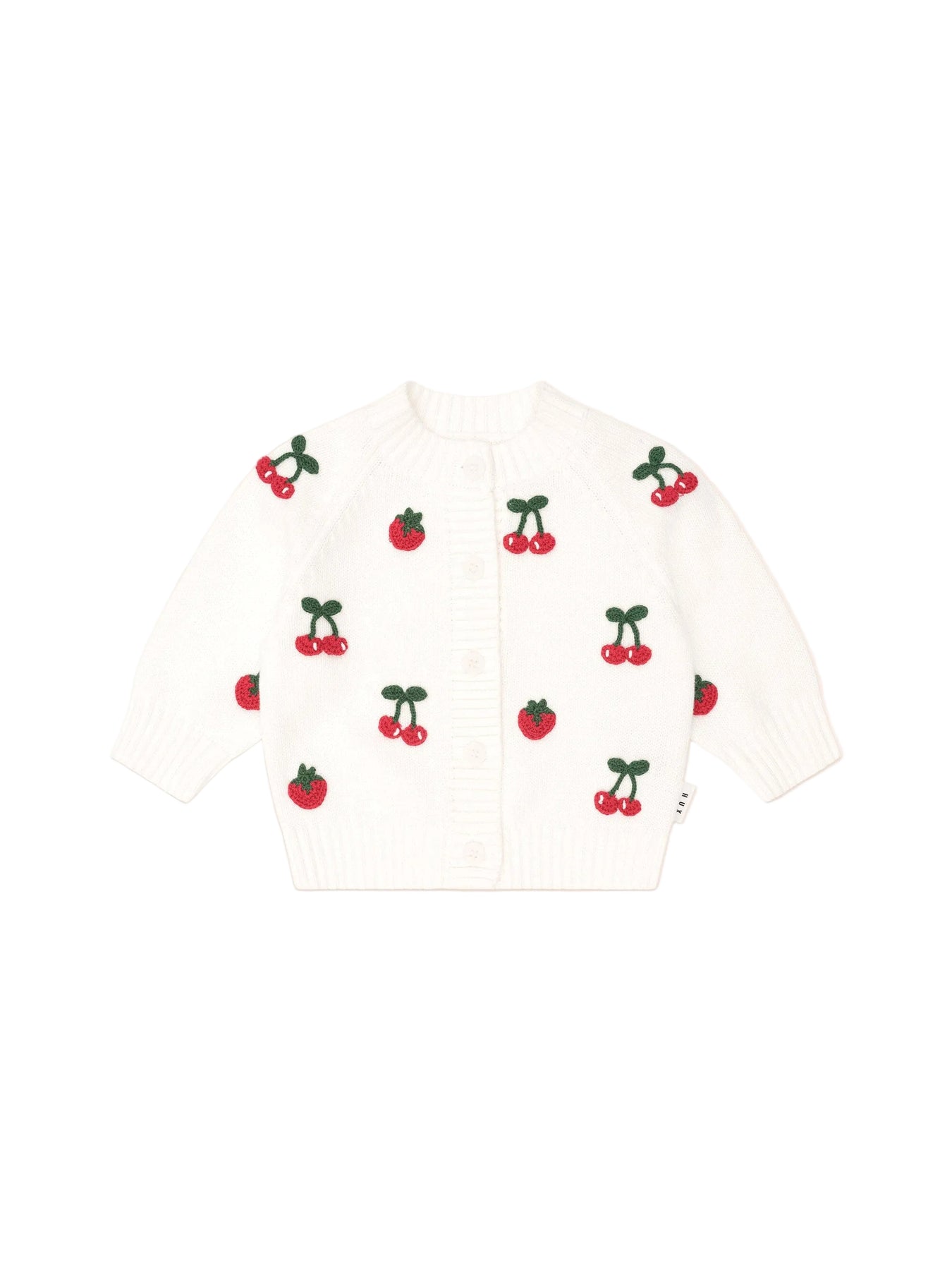 An extra special cherry cardi. Made from luxuriously thick knitwear, it has an all over cherry pattern, pretty scalloped edging and large buttons for easy dressing.