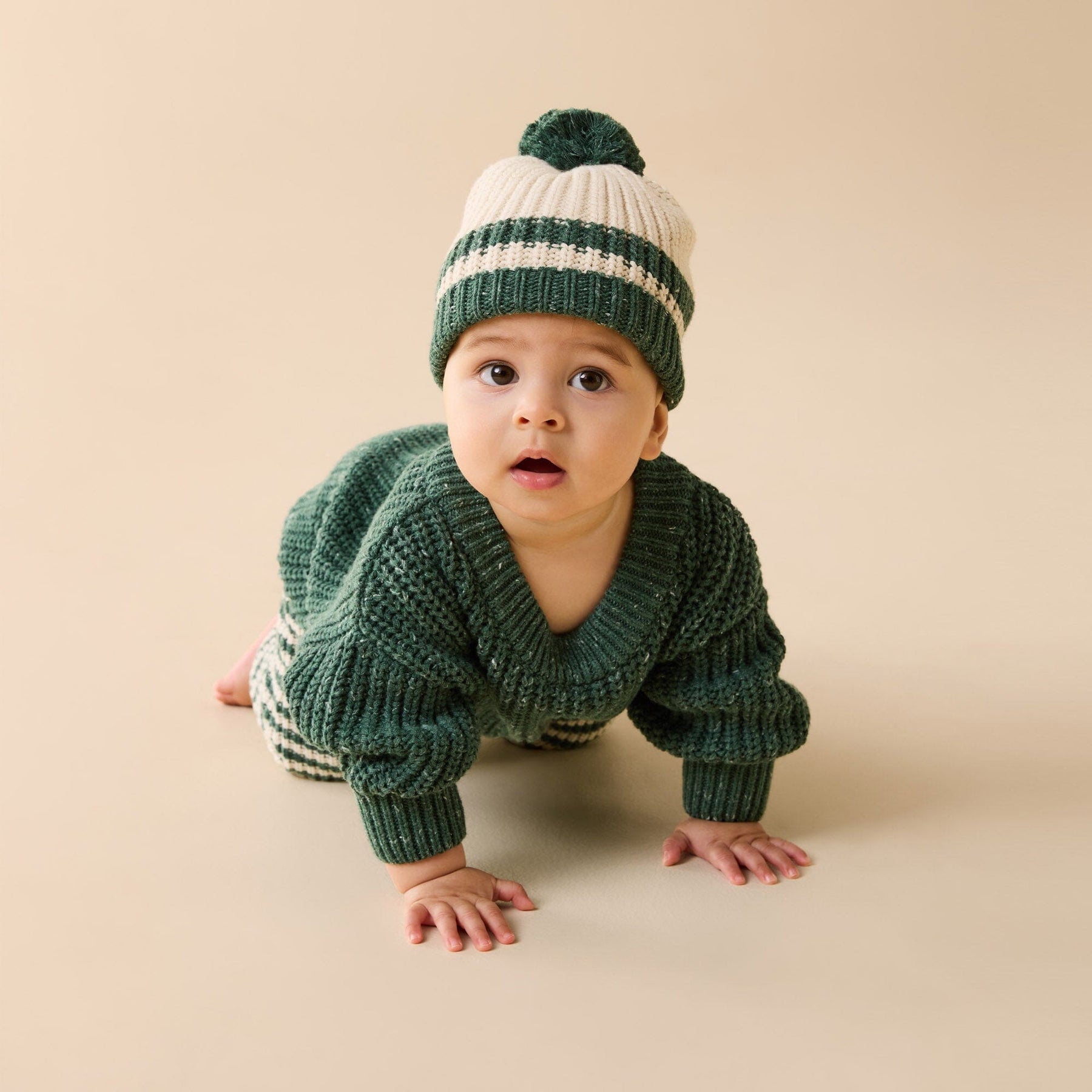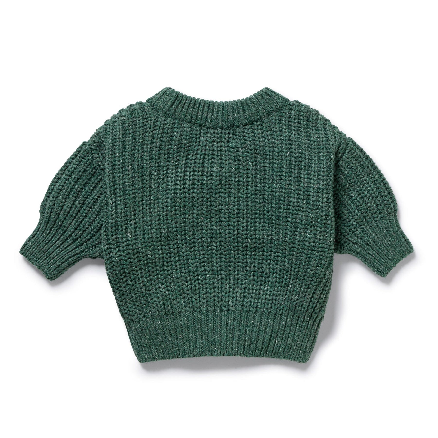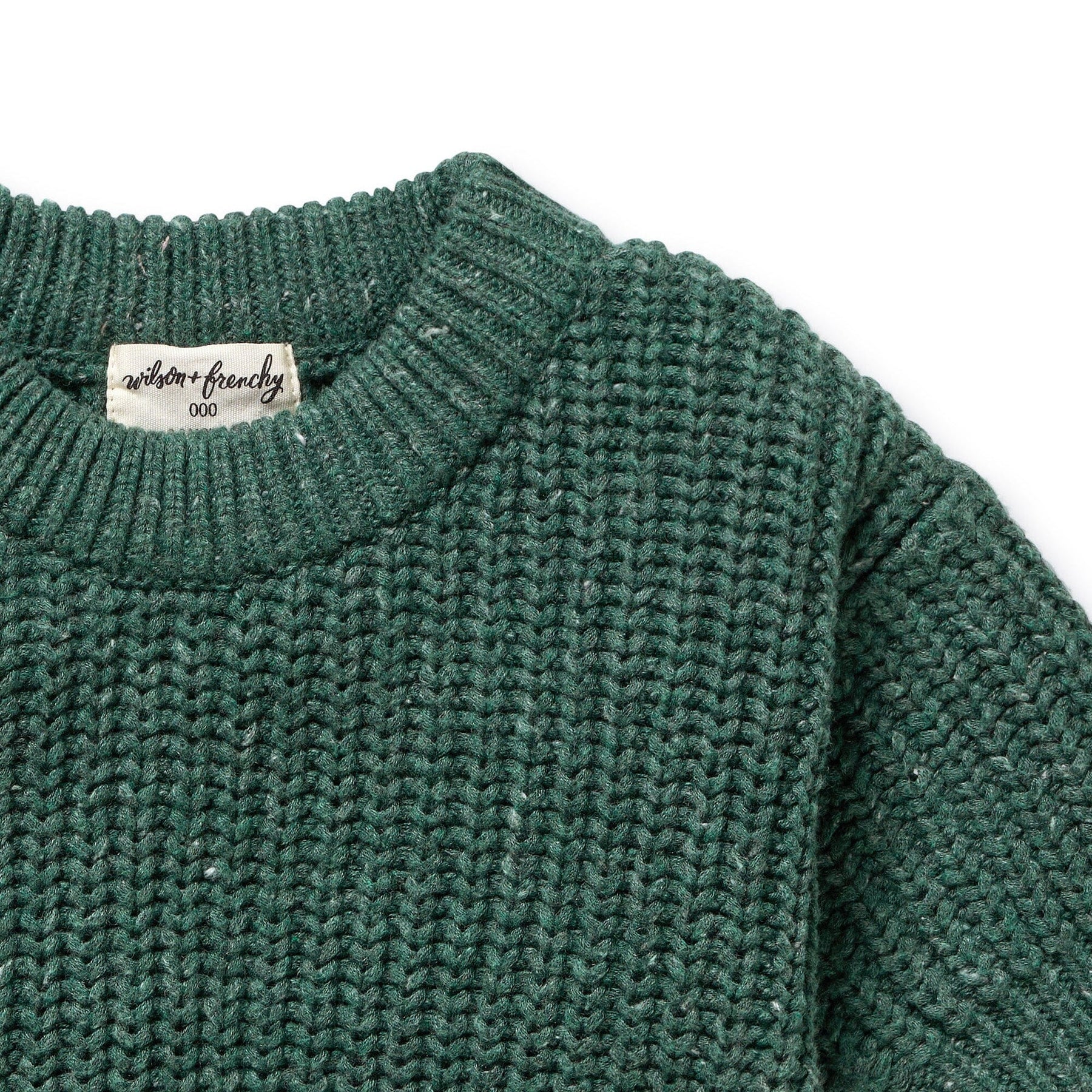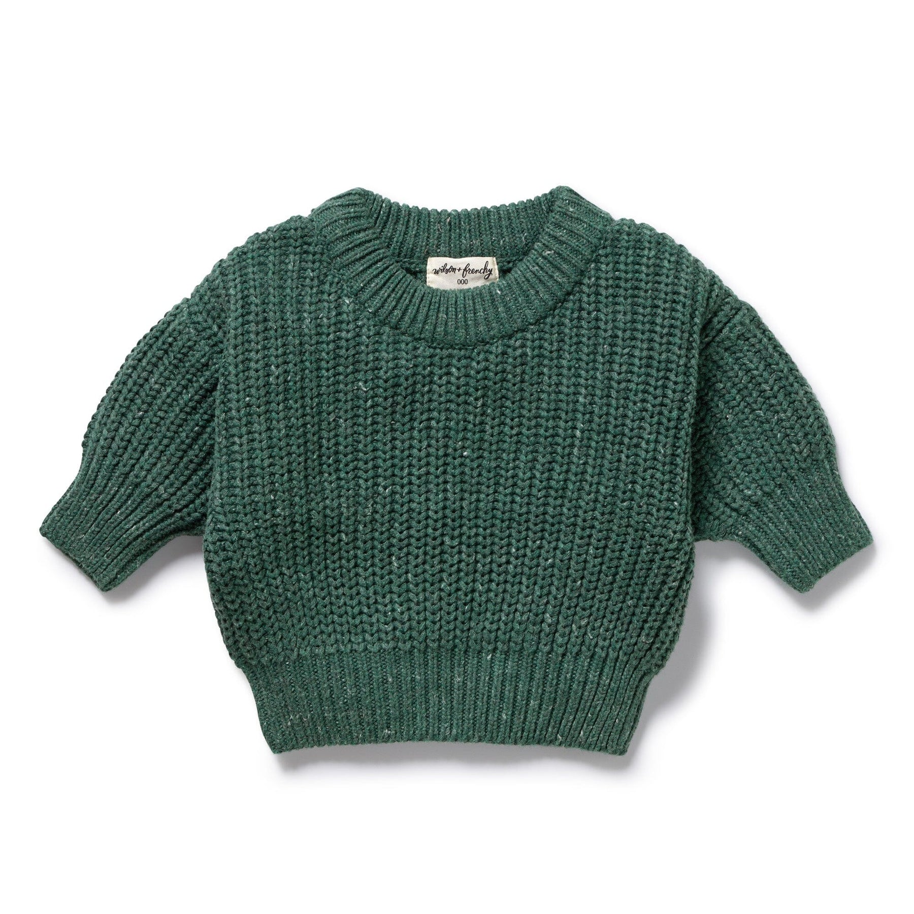 Stay cosy and cute with this chunky rib knitted jumper from Wilson and Frenchy. Made from a luxurious blend of organic cotton, wool, and bamboo, this roomy fit jumper will keep your little one warm and stylish. With ribbed cuffs and neckline, it's the perfect choice for babies and kids.